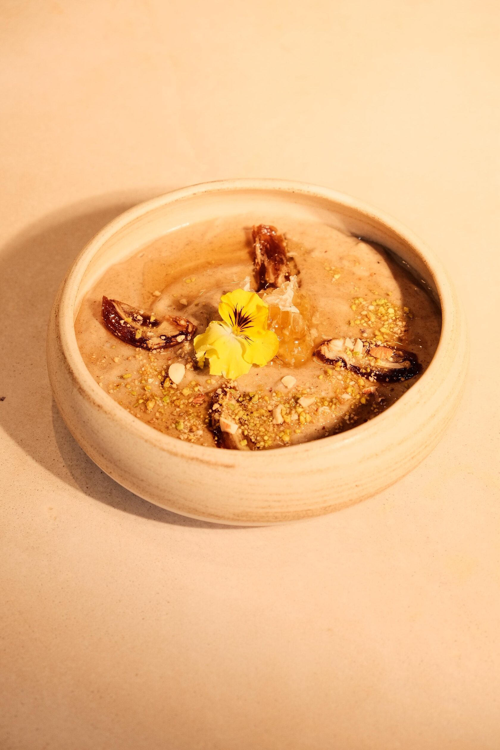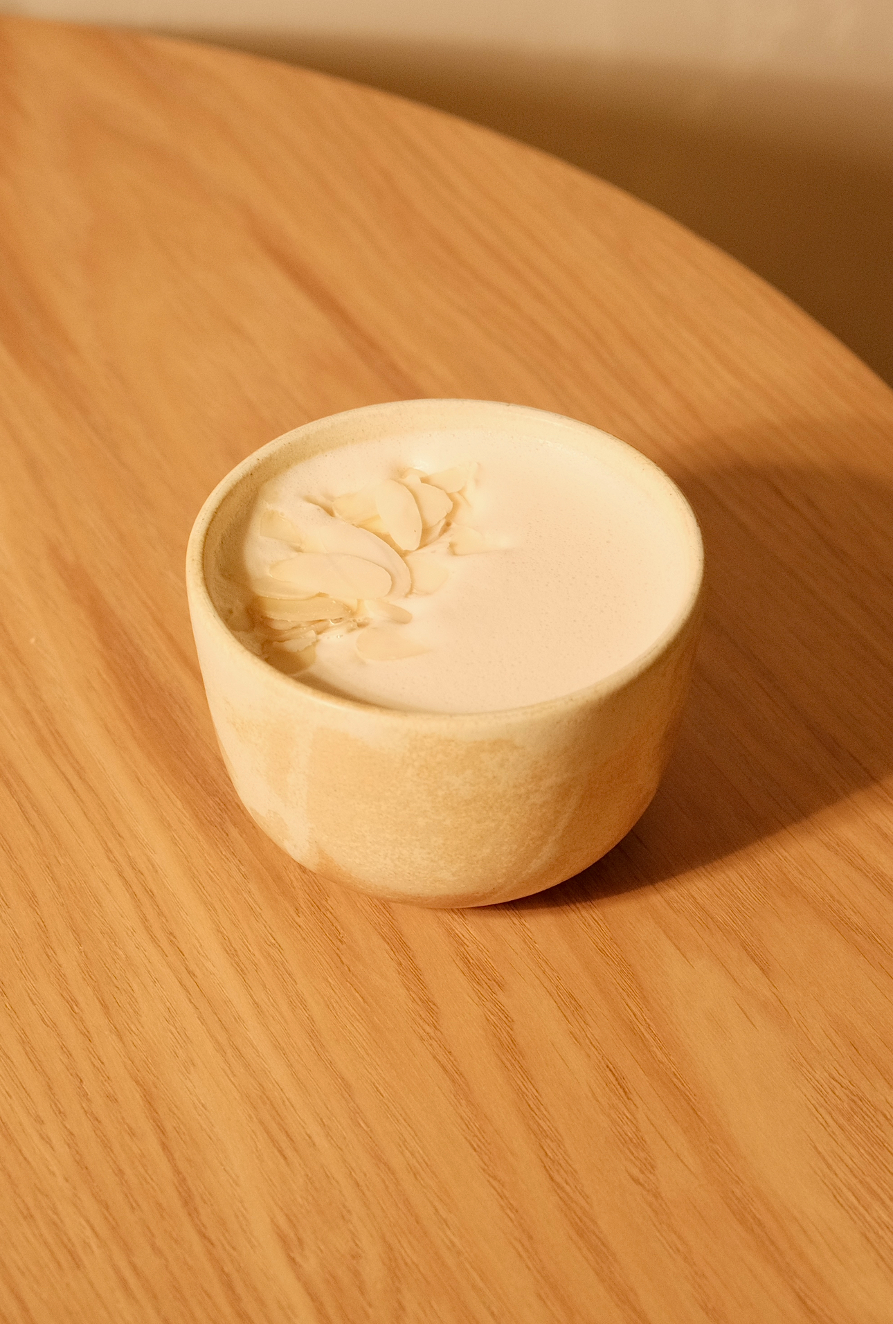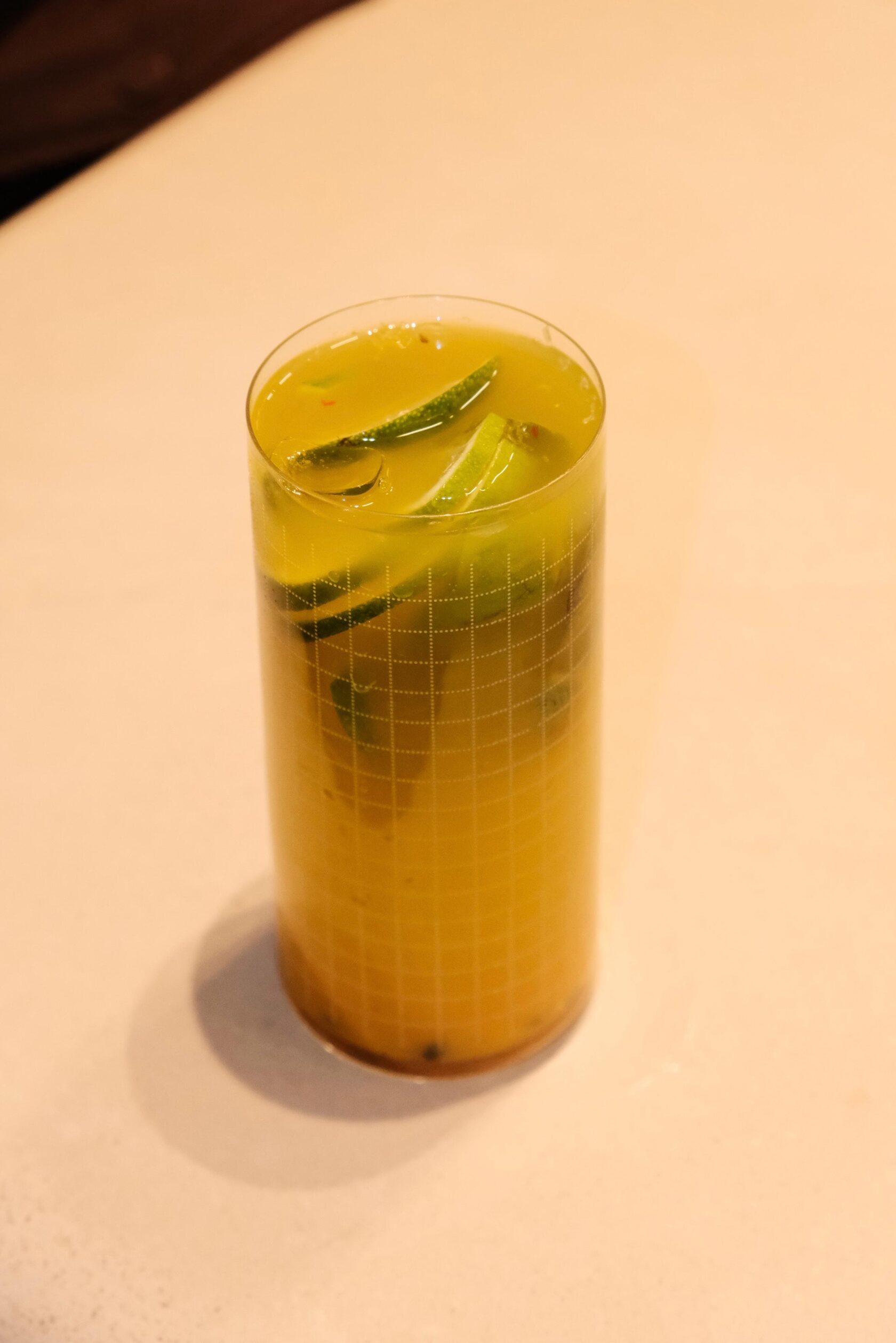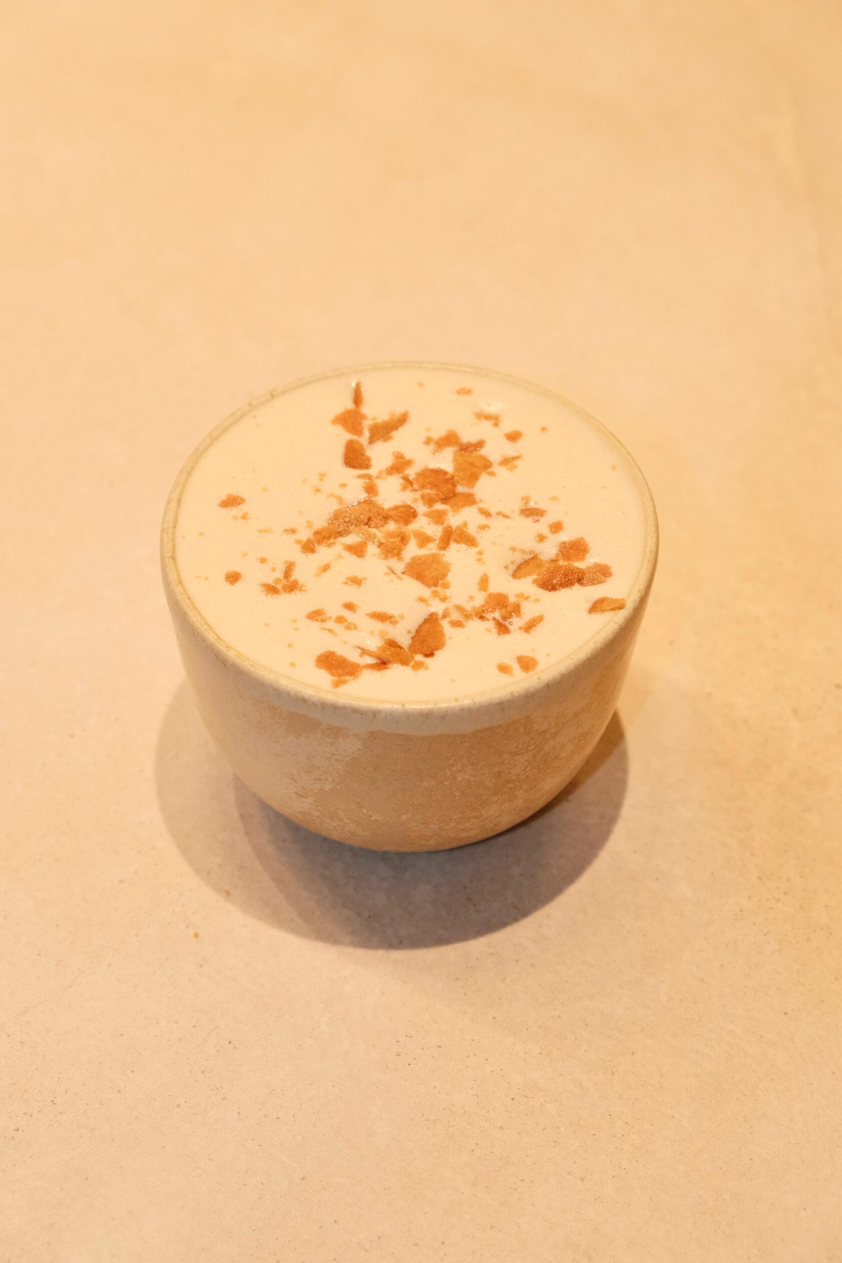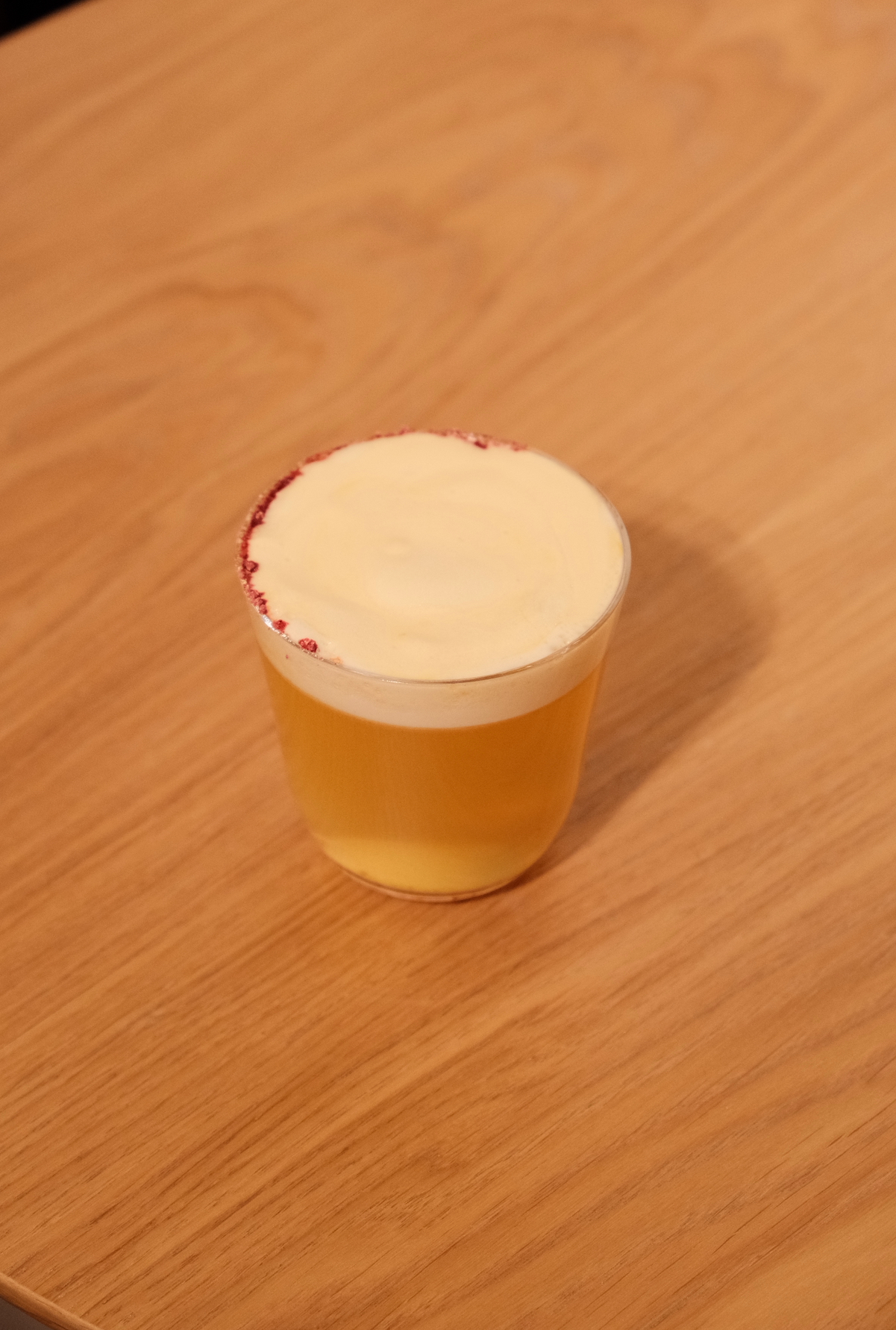 Теплый напиток на основе настойки ромашки с добавленим микса цитрусовых фруктов и нотки текилы б/а, полается с крастом из гималайской соли