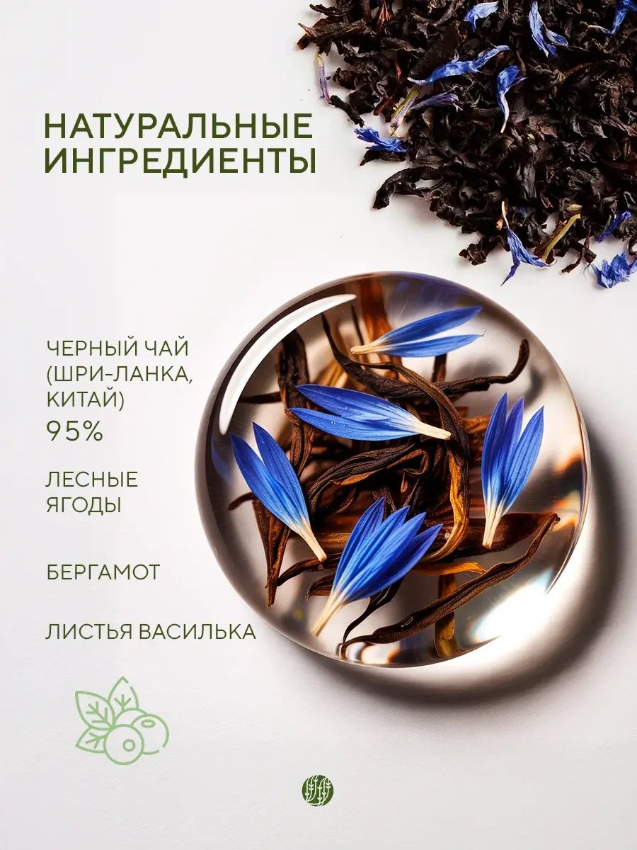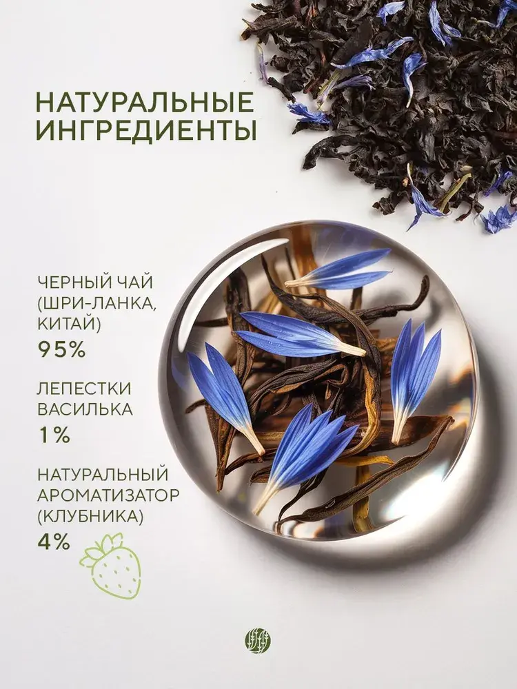 Купаж черного чая с медовыми нотами, ароматом лаванды, клубники и василька.