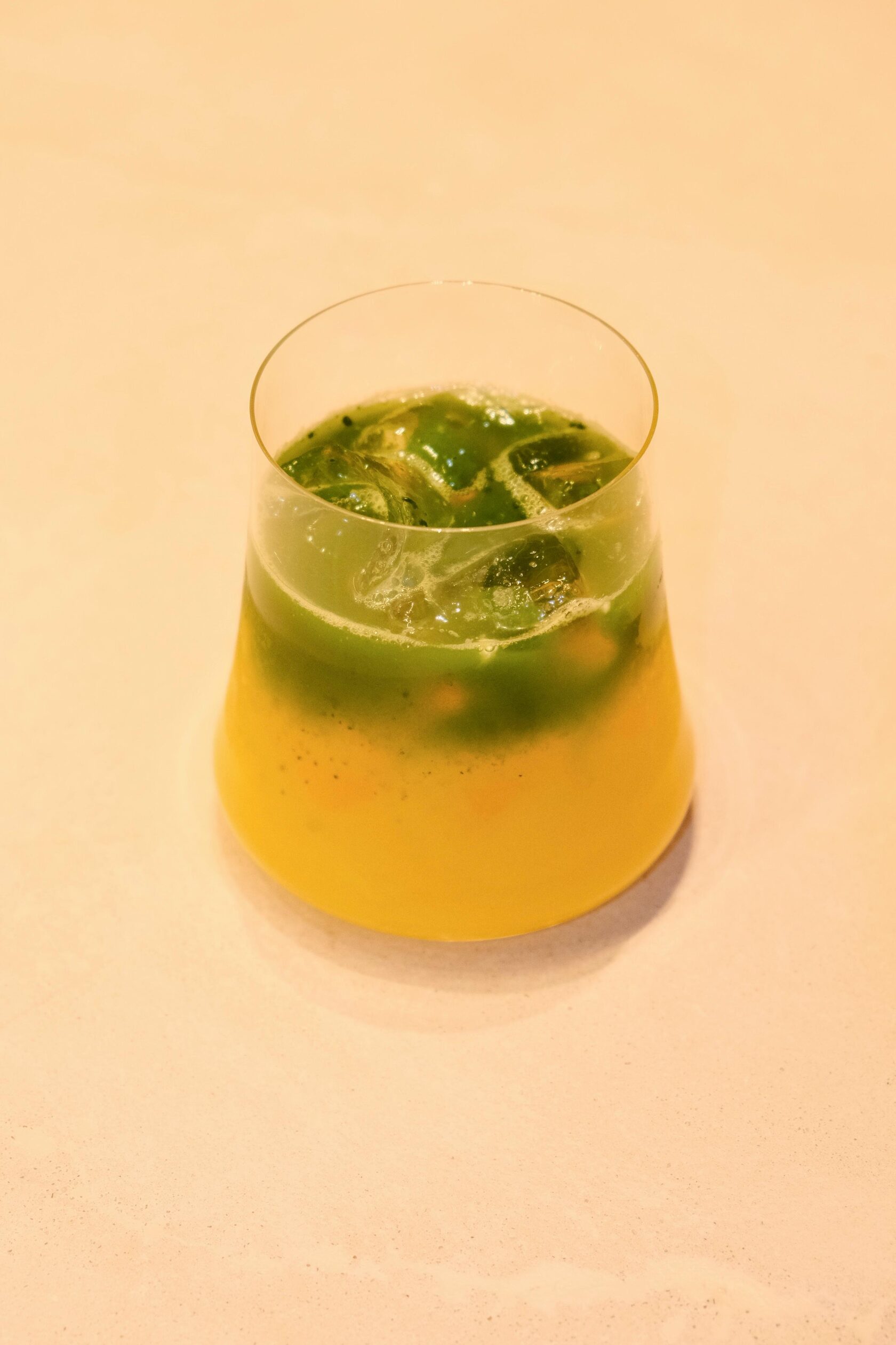 Апельсиновый фреш с матчей и сиропом топинамбура