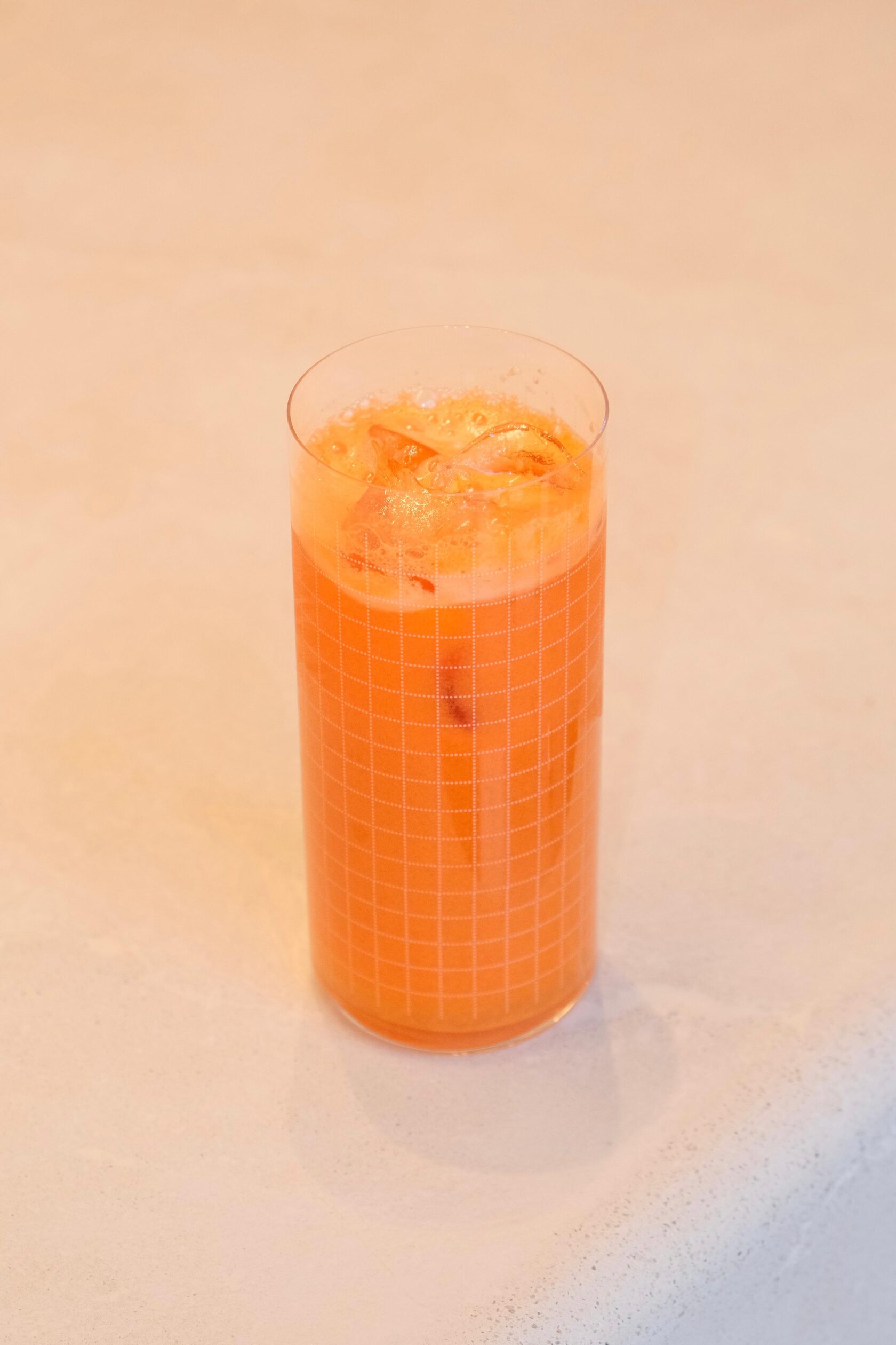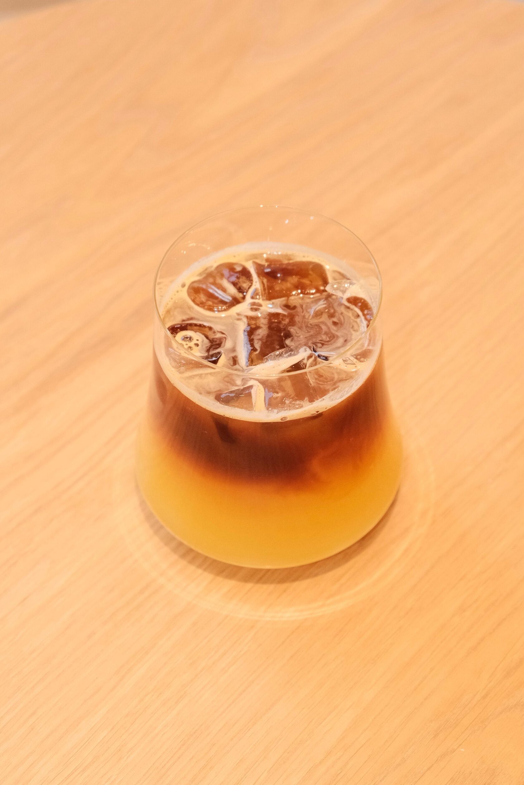 Апельсиновый фреш с двойным шотом эспрессо и карамельным сиропом