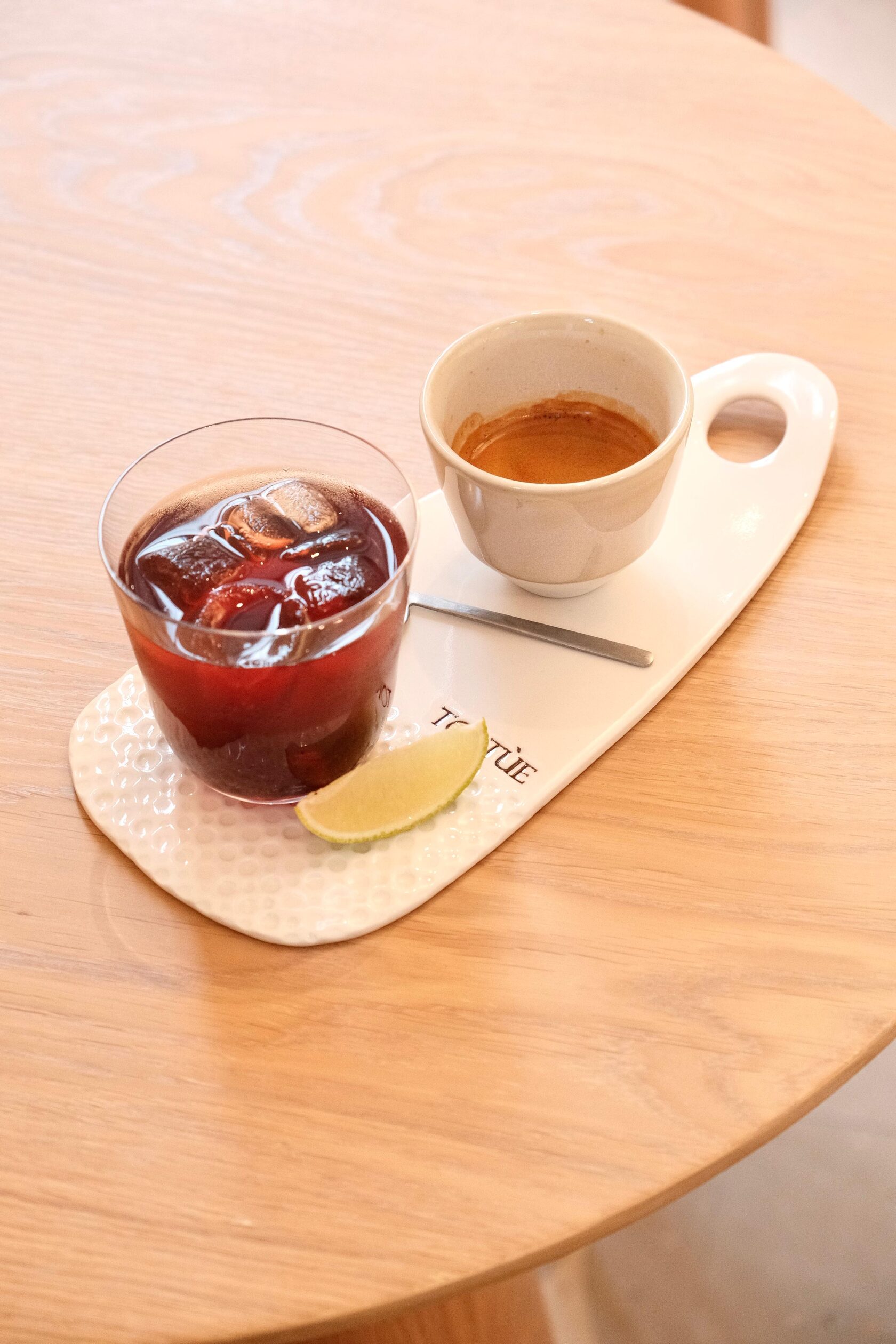 Напиток на основе фильтр кофе и натурального вишневого пюре